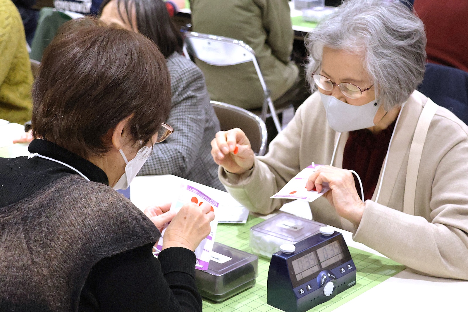 個人戦4回戦の対局を行いました。白熱した試合に一喜一憂したり、全力を出し切って充足感を味わうなど、出場者はそれぞれのスタイルで、交流大会を“エンジョイ”されていました。
