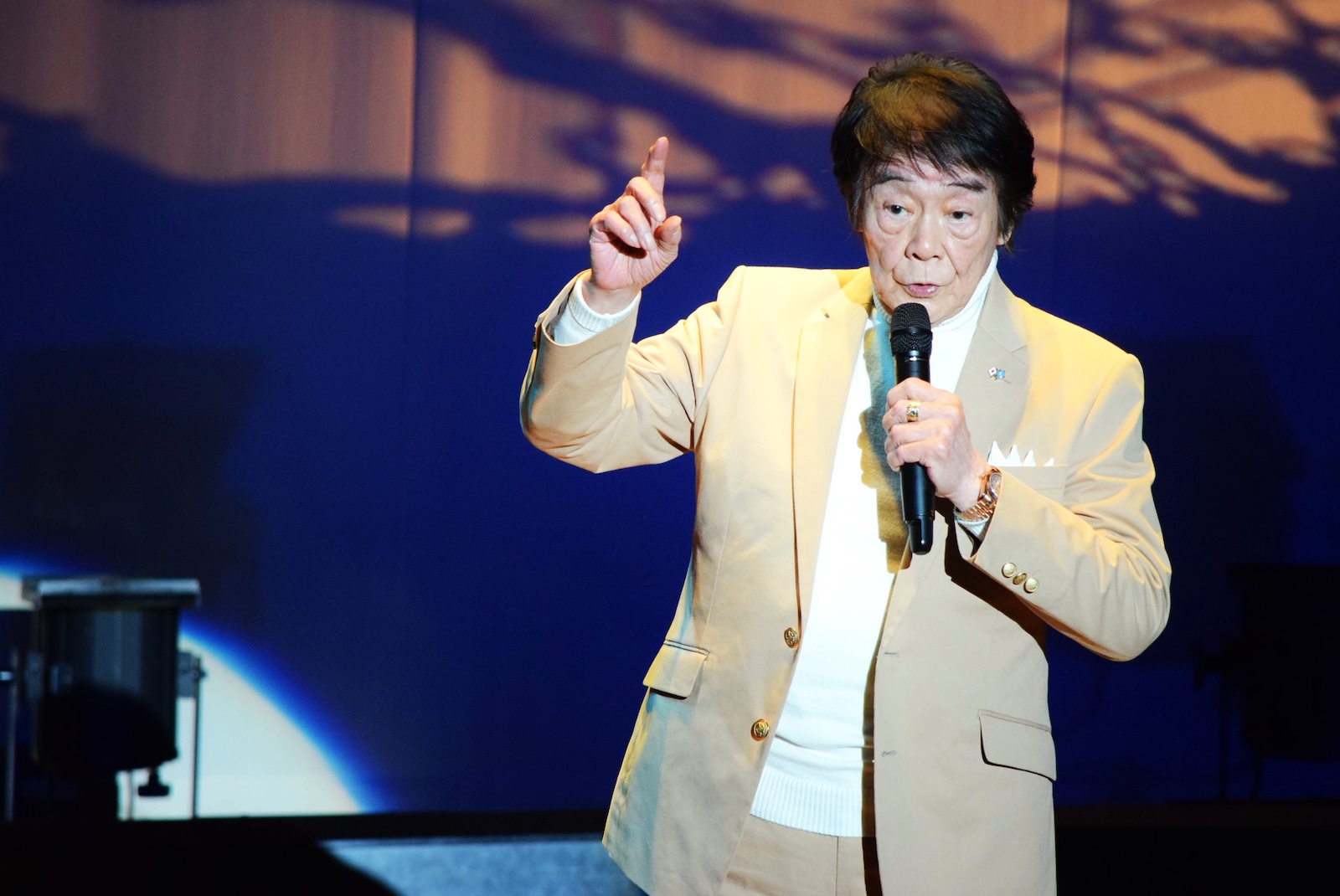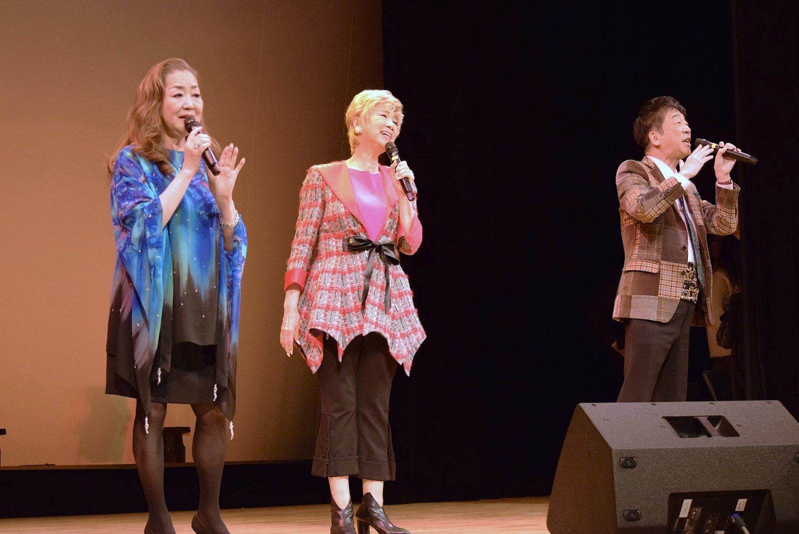 「歌い方講座」ではゲストの海沼実さんからコツを学び、「プレゼント抽選会」では、当選者にゲストのサイン色紙が贈られました。「みんなで合唱」では、会場の皆さんと『川の流れのように』を歌唱しました。