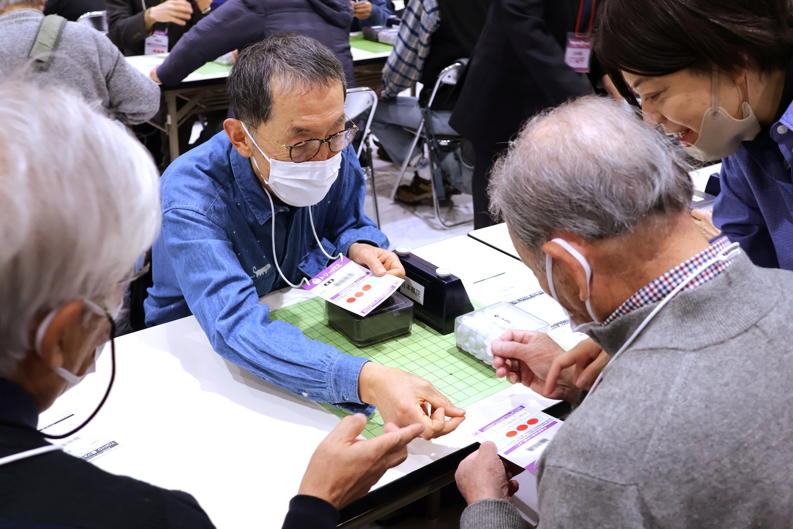 個人戦4回戦の対局を行いました。白熱した試合に一喜一憂したり、全力を出し切って充足感を味わうなど、出場者はそれぞれのスタイルで、交流大会を“エンジョイ”されていました。